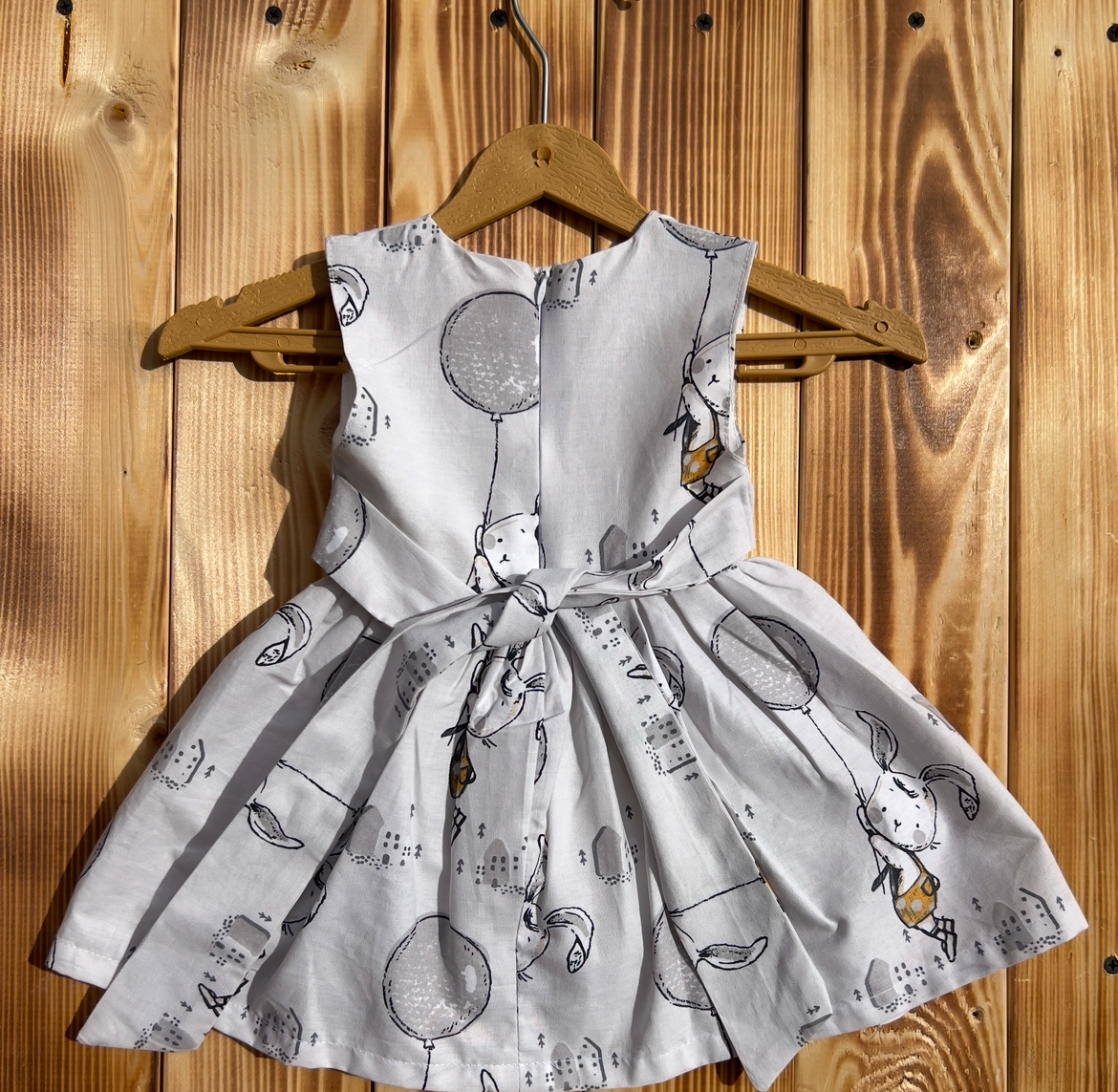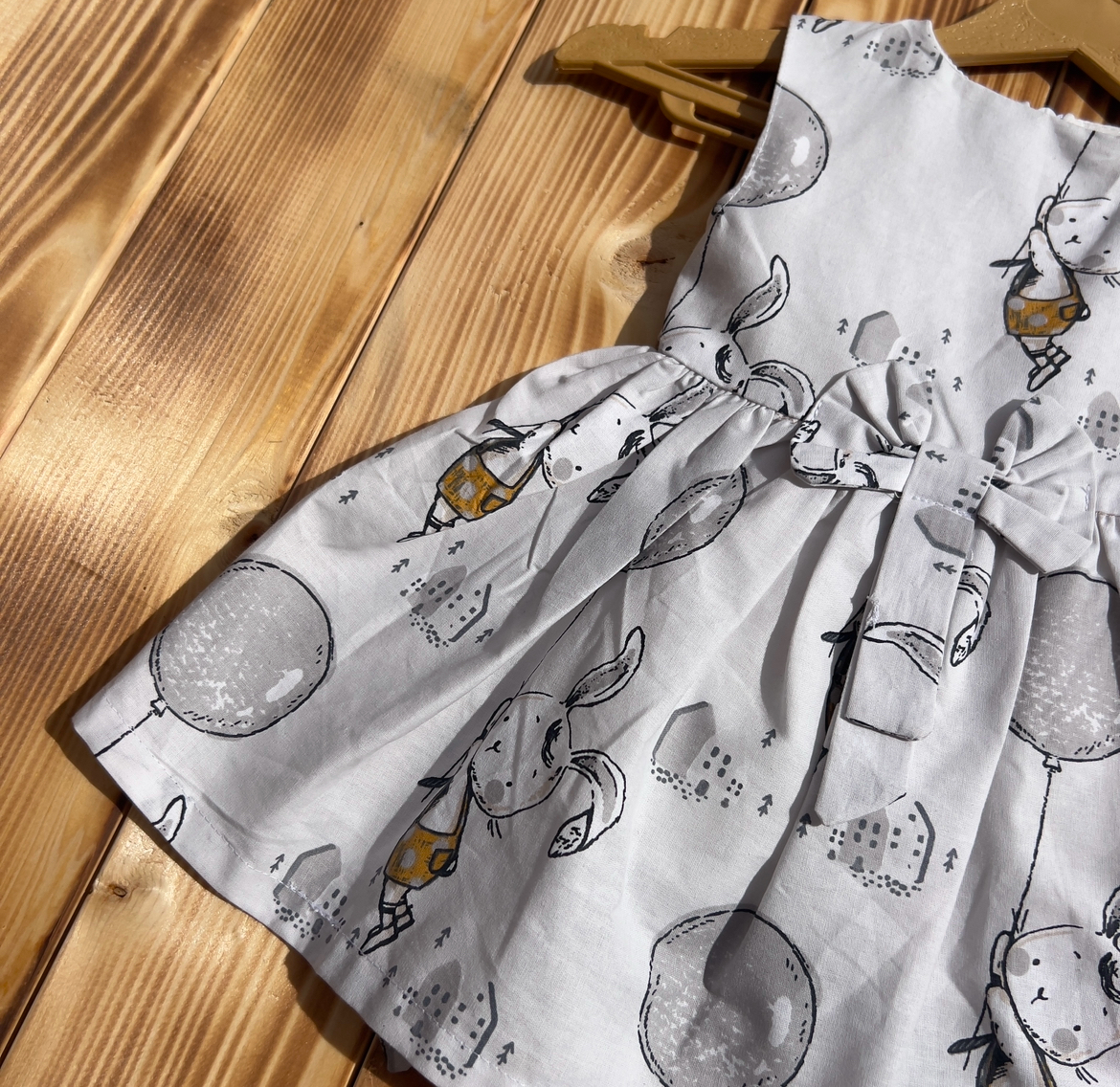 پیراهن نخی دخترانه آستر دار طرح خرگوش بادکنکی
