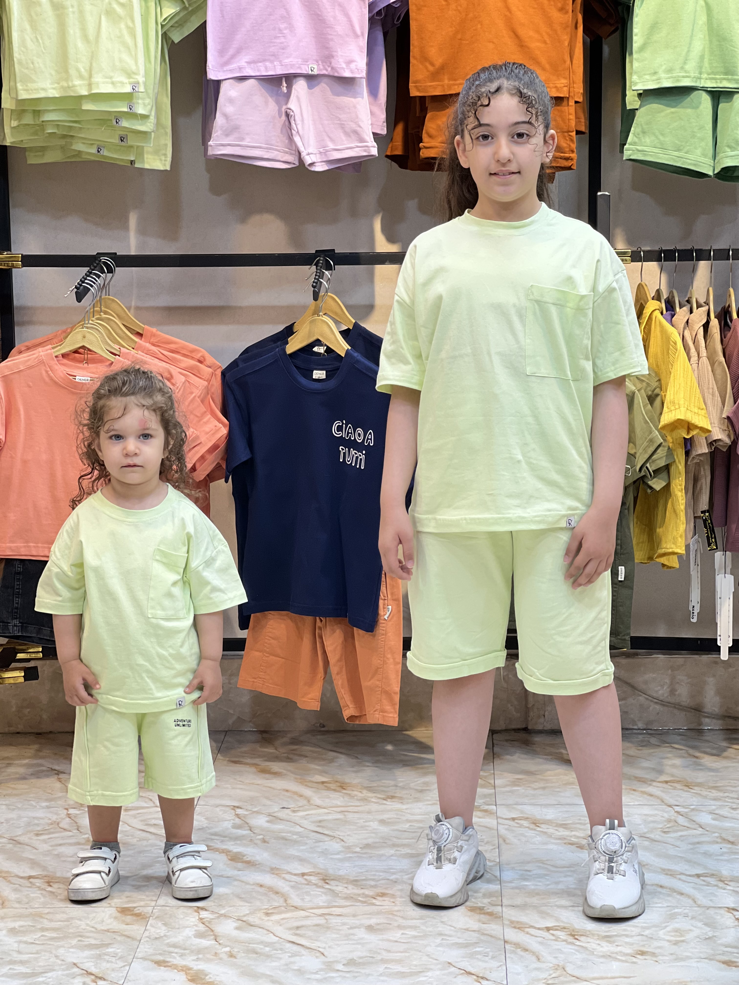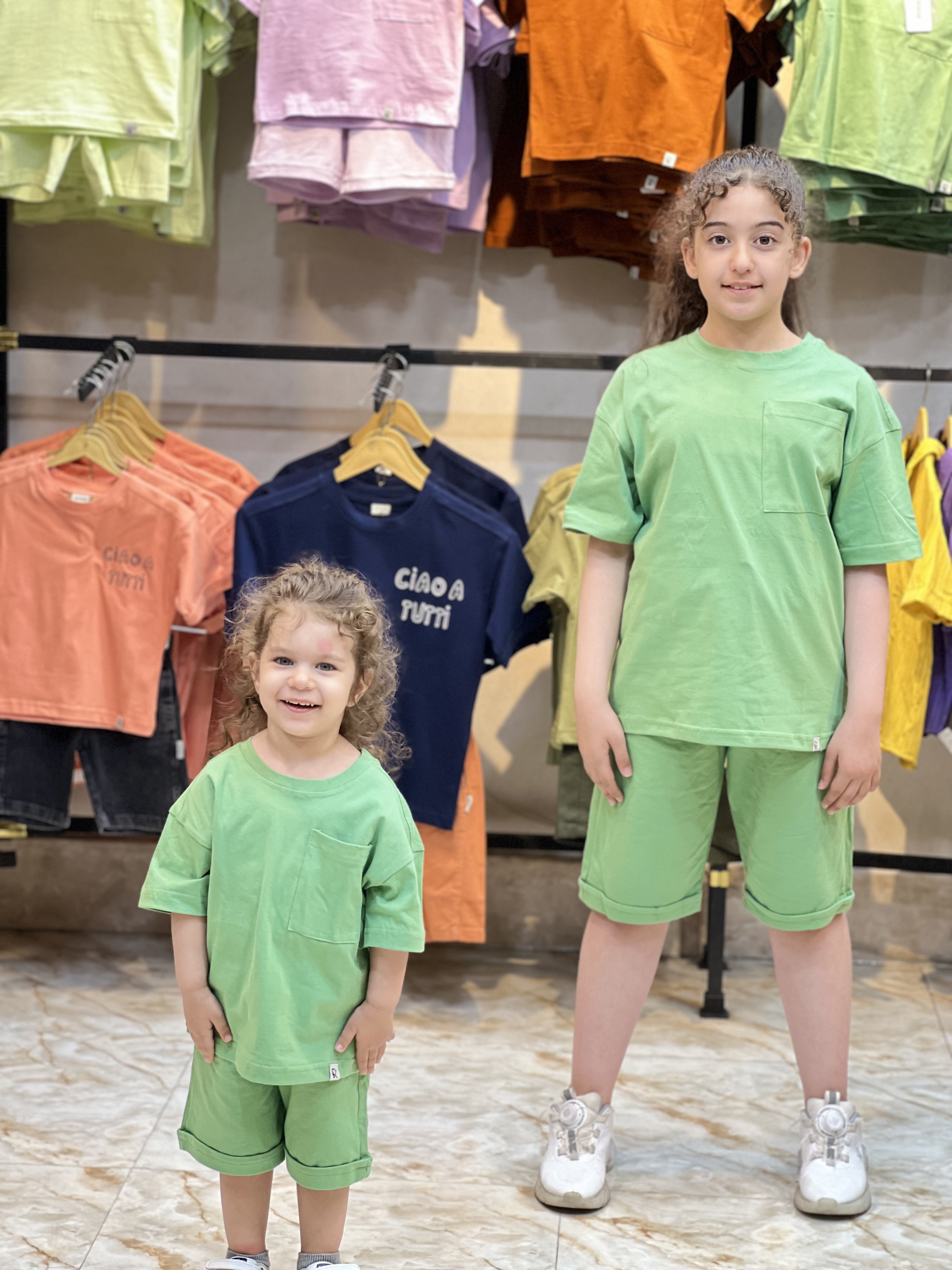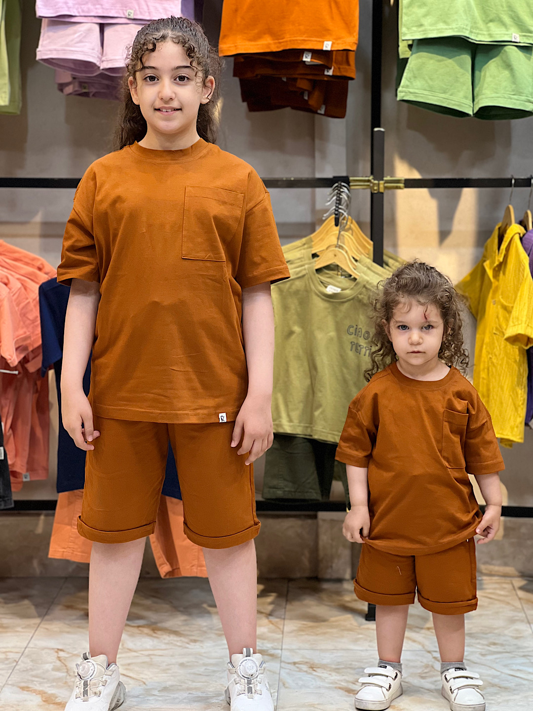 ست تیشرت و شلوارک ساده رنگی نخ پنبه