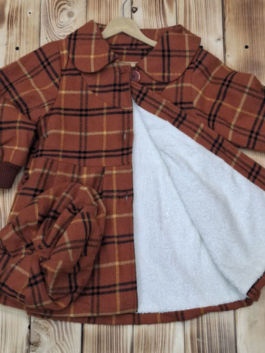 ناموجودپالتو دخترانه کلاه دار چهارخانه نارنجی داخل خز دار جلو دکمه